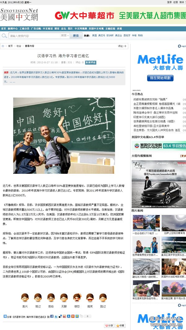 美国中文网(美国中文电视主办):汉语学习热 海外学习者已逾亿