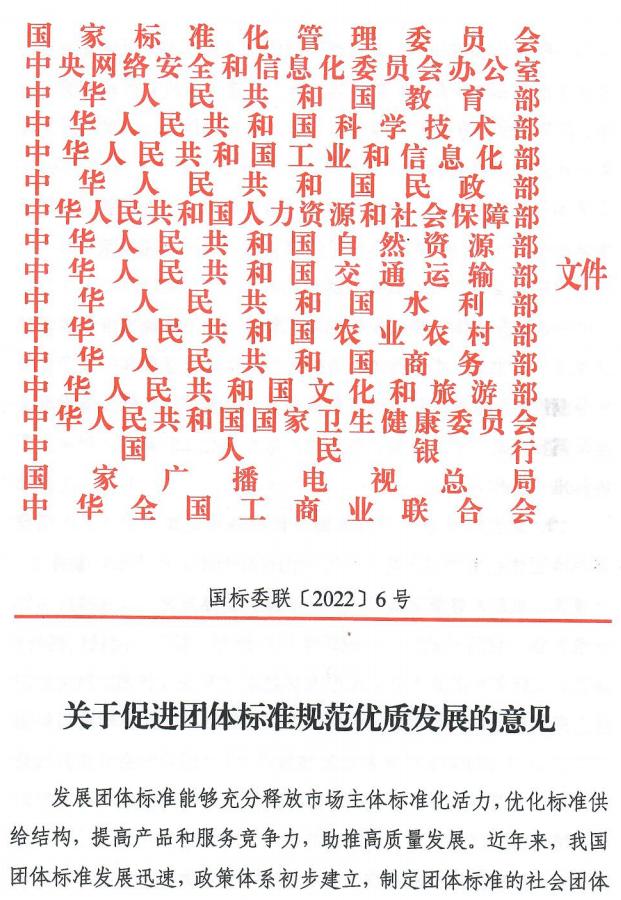 2022年2月23日,国家标准化管理委员会等十七部门联合印发《关于促进团体标准规范优质发展的意见》。