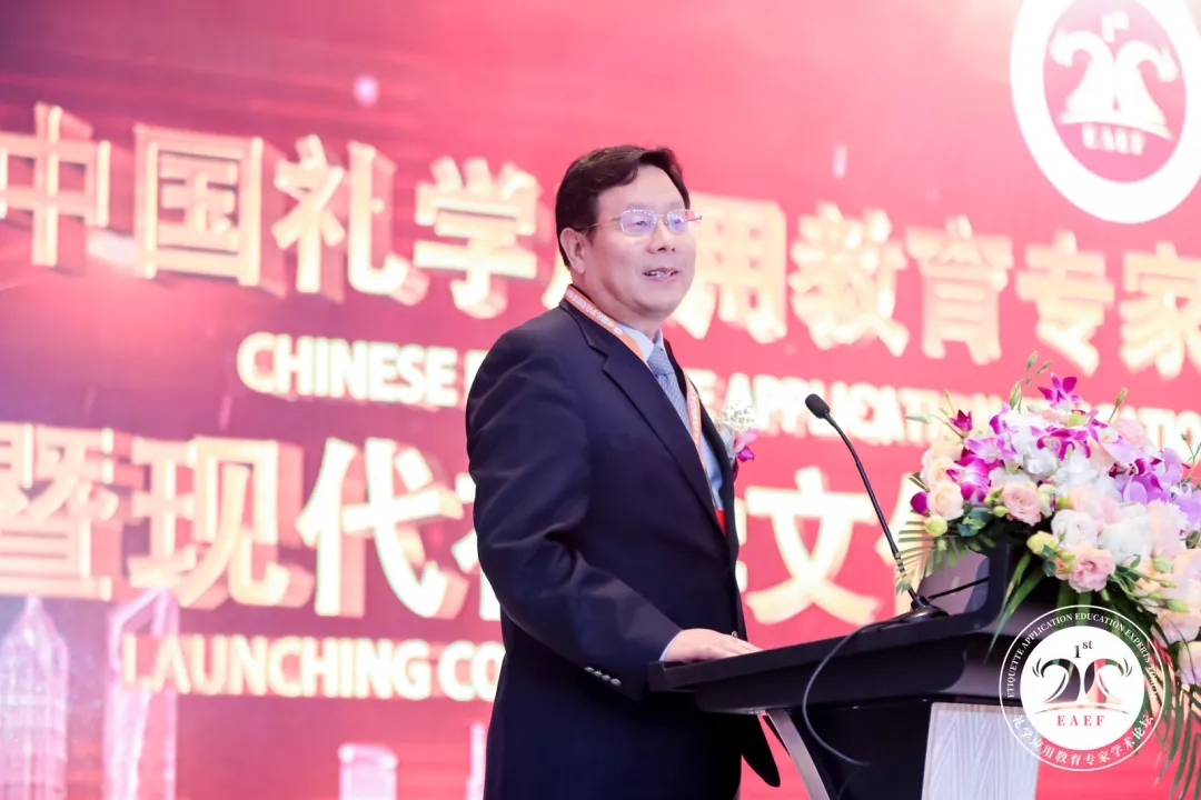 国际认证协会国际礼仪专家考评委员会总顾问文泉老师在会上致辞,提出了自己对礼学教育工作者的素质要求,即礼学工作者应具备“学者的风范,礼者的魅力“。 他说, 在今天这个特殊时代,礼学教育工作者是文化事业的建设者、传承者和守护者。礼学工作者的学者风范,就是要看,能否负起社会责任,深度地参与到新时代伟大的人文社会建设当中,展现学者的风范和担当。这个素质要求应该成为礼学工作者未来追求的目标和奋斗的方向。