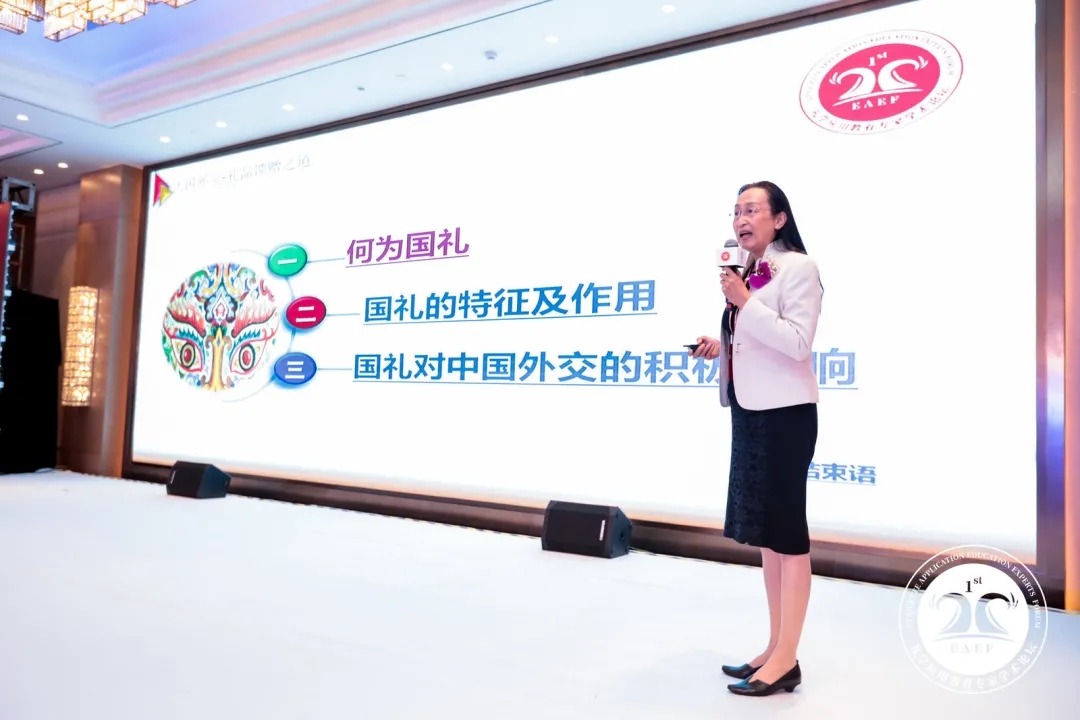 中国礼宾礼仪文化专业委员会理事朱红勤教授向大家讲述了《大国外交——礼品馈赠之道》。得体的送礼,恰似无声的使者,给交际活动锦上添花。朱红勤教授指出,国礼是对受赠者的关照和尊重。