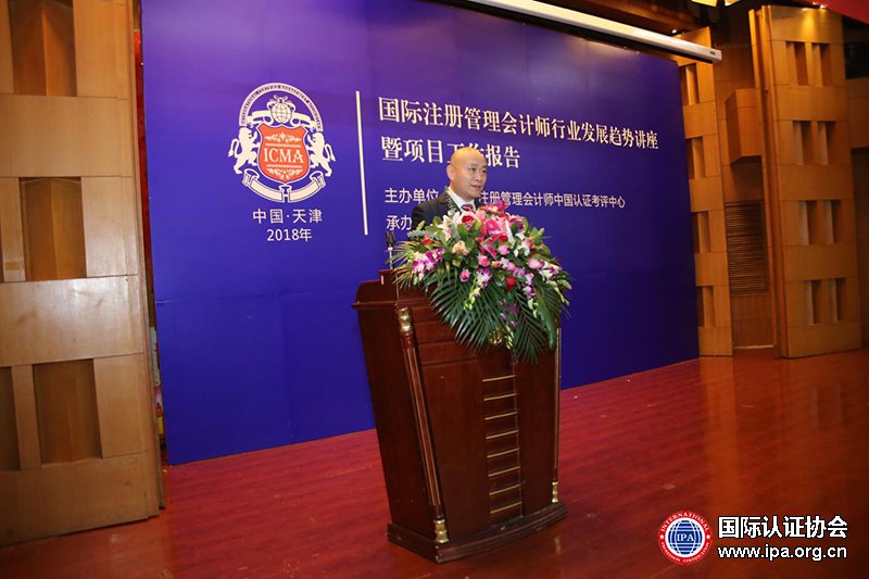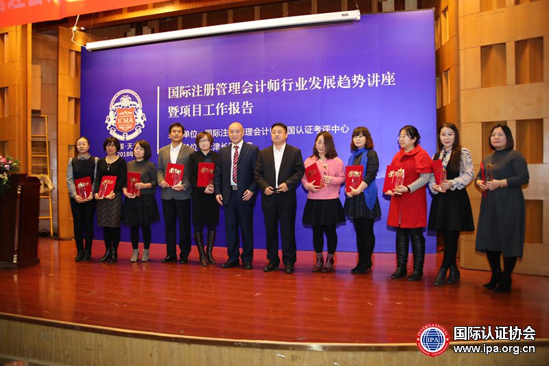 1月21日上午9点由国际认证协会(IPA)、国际注册管理会计师ICMA中国认证考评中心联合天津长财教育在天津舒泊花园大酒店百合厅召开了《2018年国际注册管理会计师行业发展趋势讲座暨项目工作报告》。国际认证协会中国区会长沙江先生;国际注册管理会计师中国认证考评中心主任任毅先生;国际注管理会计师中国认证考评中心副主任郑春辉以及业界知名专家应邀出席;著名财务专家教授、海尔集团原财务总监、国际注册管理会计师特聘讲师孙犁老师并为来自天津各个单位的300多名财务人员讲授一天课程。