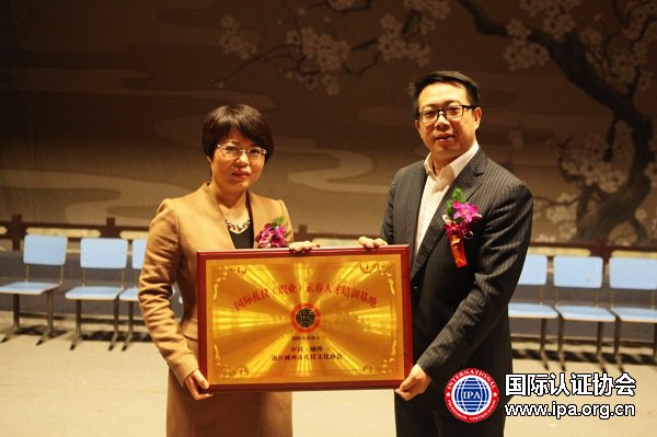 (上图是:IPA礼仪认证总顾问导师---郭品禾先生进行“IPA国际礼仪(职业)素养人才培训基地”资质的授牌仪式)