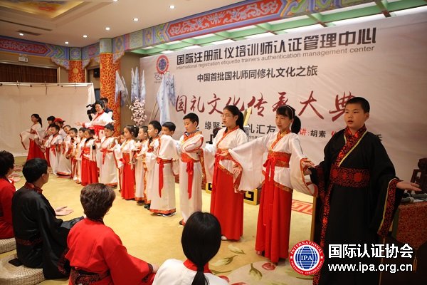 “国有四维,礼义廉耻,四维不张,国乃灭亡,四维既张,国乃复兴“。朗朗书声,余音绕梁,中国首批国礼文化同修之旅就此拉开帷幕。