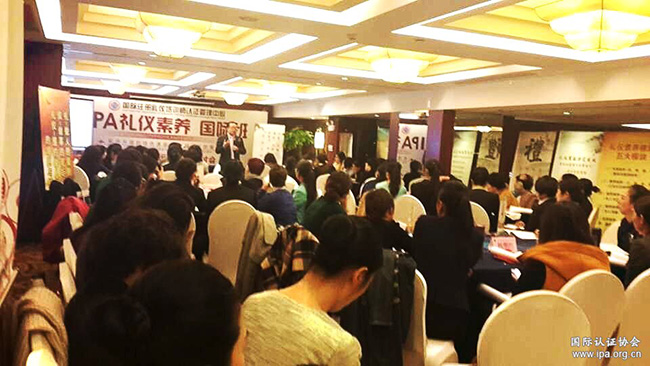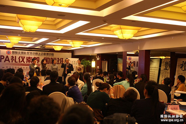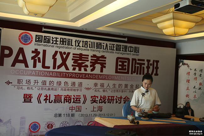 2013年11月29日-12月1日,在社会各界人士的广泛关注下,在国际化大都市上海近八十位来自祖国各地的学员顺利圆满的完成了《IPA礼仪素养 国际班》暨礼仪赢商运实战研讨会全套课程学习!本系统课程是 IPA国际注册礼仪培训师认证管理中心【中国区】结合中国当下的社会环境、企业环境、国家精神而研发的适合所有愿意自我提升的一套解决国人礼仪素养的全方位的系统训练课程!内容涉及6大礼仪素养模块的综合提升训练为目标导向,结合国际最先进训练系统,符合中国精神文化背景的一套震撼超值的礼仪素养课程。当学员走进培训课室那一刻都被震撼了,她(他)们感受到了礼仪文化的精髓,看到了精美的会场布置的每个角落细节,无论是展板,礼仪素养观点等等条幅,听到了有文化内涵的定制音乐,闻到了曼妙的专业精油调香的香氛,摸到了为每位学员定制的所有学习道具,有茶具,有胸牌,有花道有学员手册……最重要的是现场18位金牌礼仪讲师以身作则的礼仪素养言行举止深深的打动了本次学员的心。而这一切的呈现都是告诉本次所有的学员:这就是IPA 的平台的理念:专业、务实,严谨,守信!礼仪一定要靠氛围来感受体验和理解并实践得来的,而IPA 这个国际化的大平台就已经呈现其独有的魅力与实力!让在场的学员振奋。