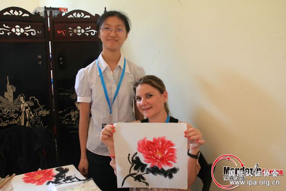 当走进现场的时候,您会眼前一亮。感觉走进了传统中国,体验到中国古典的韵味。迎面而来的中国气息,也让众多外国友人驻足儒森,整个会场中最热闹红火的展台就是儒森汉语:有坐下来喝茶和老师聊天的,有和书画老师一起画画的,有和皇上照相的,有欣赏古筝的,有和老师一起串珠的,最多的就是咨询课程的。