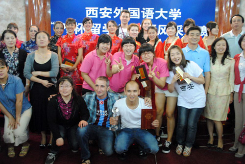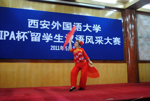 据悉此次活动,有来自十几个国家的留学生参加了此次比赛,节目形式从诗歌朗诵到民族独舞,从流行歌曲大串烧到相声小品等,现场气氛紧张热烈。本次活动也得到了当地有志于汉语推广的各界人士的广泛关注,国际注册汉语教师证书陕西考务中心和西安外国语大学汉学院的诸位领导也亲临现场为选手加油打气。经过一番激烈的角逐,比赛的一等奖桂冠最终由来自哈萨克斯坦的瑞纳一曲《你那么爱他》摘得,二等奖则由来自乌克兰的选手获得。