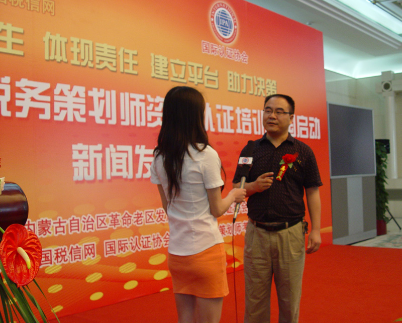 2011年6月16日,国际注册税务筹划师资格认证培训中国启动新闻发布会在北京人民大会堂重庆厅隆重举行,国际认证协会轮值主席Matt Holmes(马修·福尔摩斯)先生、对外贸易部原副部长、中国国际战略学会高级顾问佟志广先生、国家副总督学郭福昌先生、中国高等教育学会副会长、中国教育报刊社原社长党委书记赵书生先生、中国人才研究院副院长王通讯先生、内蒙古自治区革命老区发展中心主任青格勒图先生、中国国际科技促进会信息部彭剑彪主任、国际认证协会中国区首席代表沙江先生、国际认证协会国际注册税务筹划师中国区考务中心主任冯树林先生、安永资深税务合伙人陈明宇先生、中国区税务筹划师考务中心特聘专家代表、国福企业俱乐部、中国区税务筹划师考务中心各地负责人、税务师事务所和企业代表出席了本次新闻发布会,媒体界人士及嘉宾近200人参加了新闻发布会。